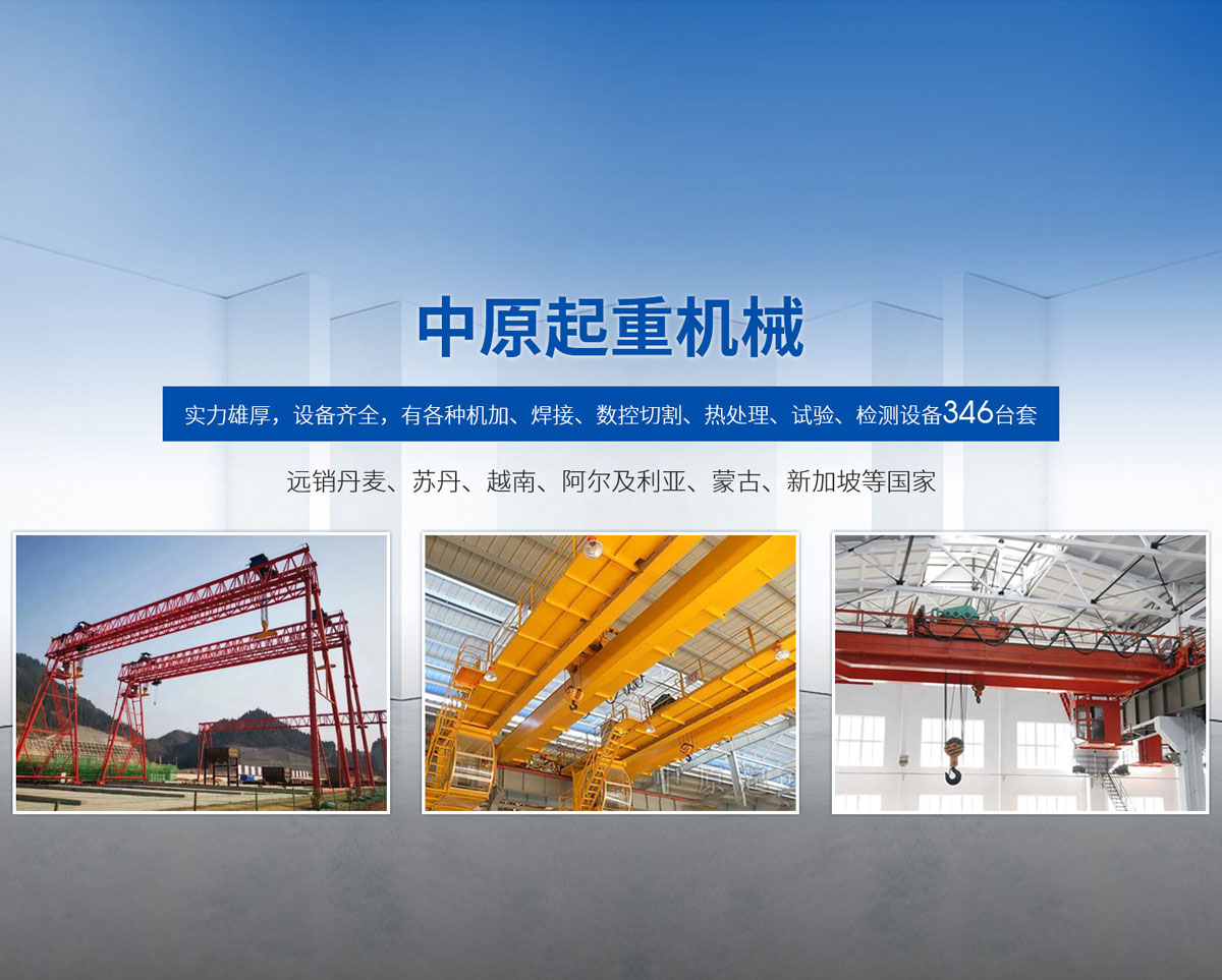 新鄉(xiāng)市中原起重機械有限公司成立于2000年,地處中原,輻射全國28個省市自治區(qū),設外埠經(jīng)銷處、辦事處268個。產(chǎn)品行銷工礦、建材、化工、冶金、電力、交通、鐵路、油田、港口等各個行業(yè)。遠銷丹麥、蘇丹、越南、阿爾及利亞、蒙古、新加坡等國家。  公司實力雄厚,設備齊全,有各種機加、焊接、數(shù)控切割、熱處理、試驗、檢測設備7臺;有機加工、熱處理、單、雙梁橋門機生產(chǎn)、檢測、安裝等9個車間,研究中心、運輸公司、安裝維修服務公司等機構,?  主要產(chǎn)品有:LD型1~20噸電動單梁起重機系列產(chǎn)品;5~600噸通用橋式、門式、冶金、上旋轉下旋轉電磁吊、絕緣、抓斗、防爆起重機系列產(chǎn)品;LH3~100噸葫蘆雙梁系列產(chǎn)品;MH5~32噸葫蘆門式系列產(chǎn)品;0.5~40噸CD1、MD1鋼絲繩電葫蘆系列產(chǎn)品;HS1型0.5~20噸手動葫蘆系列產(chǎn)品;0.5~10噸環(huán)鏈電動葫蘆系列;0.5~40噸彎道電動葫蘆系列產(chǎn)品;裝卸橋、造船門機、架橋機、鑄造吊和水電大噸位起重機系列產(chǎn)品。  公司建立了強有力的質量保證體系和生產(chǎn)過程的質量控制系統(tǒng),嚴格執(zhí)行國家設計、生產(chǎn)標準,有嚴格的生產(chǎn)工藝過程和標準,嚴格的檢驗、檢測標準和手段。
